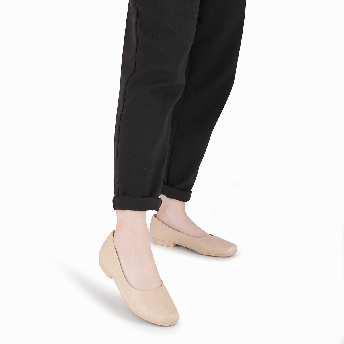 - Práctica y elegante. La Bailarina Raquel Taco Bajo mantiene tus pies descansados y y tú llena de estilo. El calzado es superflexible y ligero y además tiene un acabado supercómodo, espuma blandita en el talón, forro supersuave y suela superadherente, lo que lo hace esencial para aquellos que necesitan estar de pie durante horas en el trabajo. Suficientemente versátil para complementar cualquier guardarropa.
