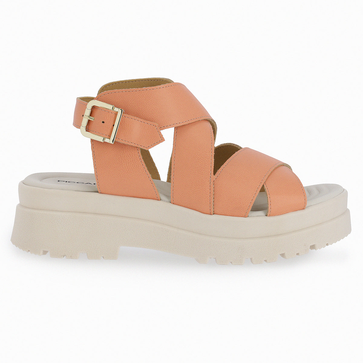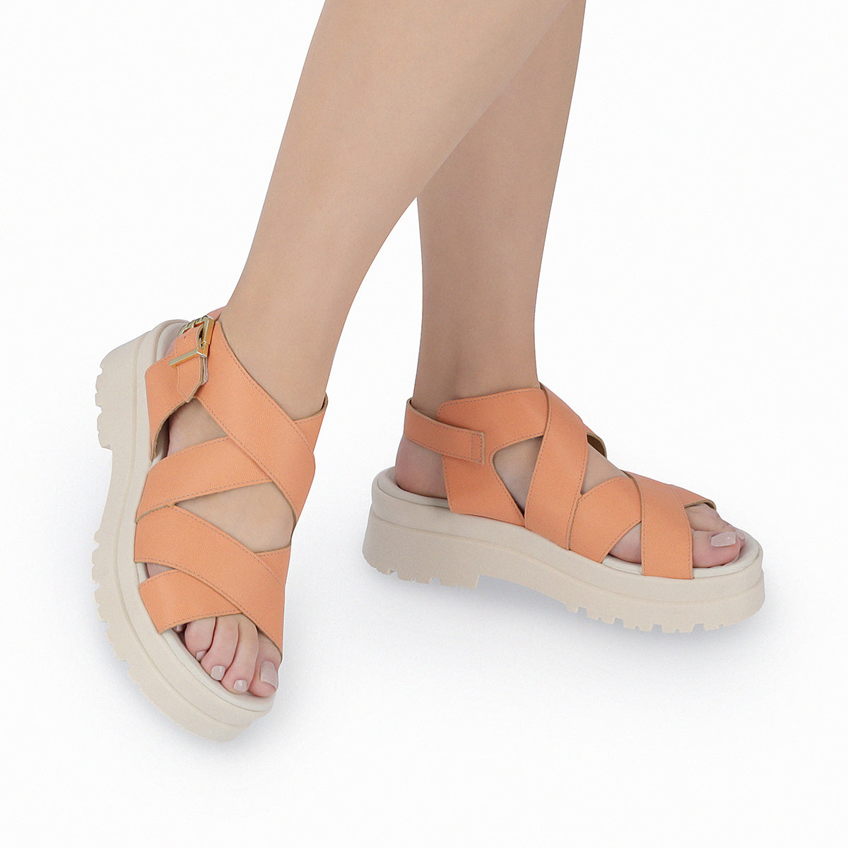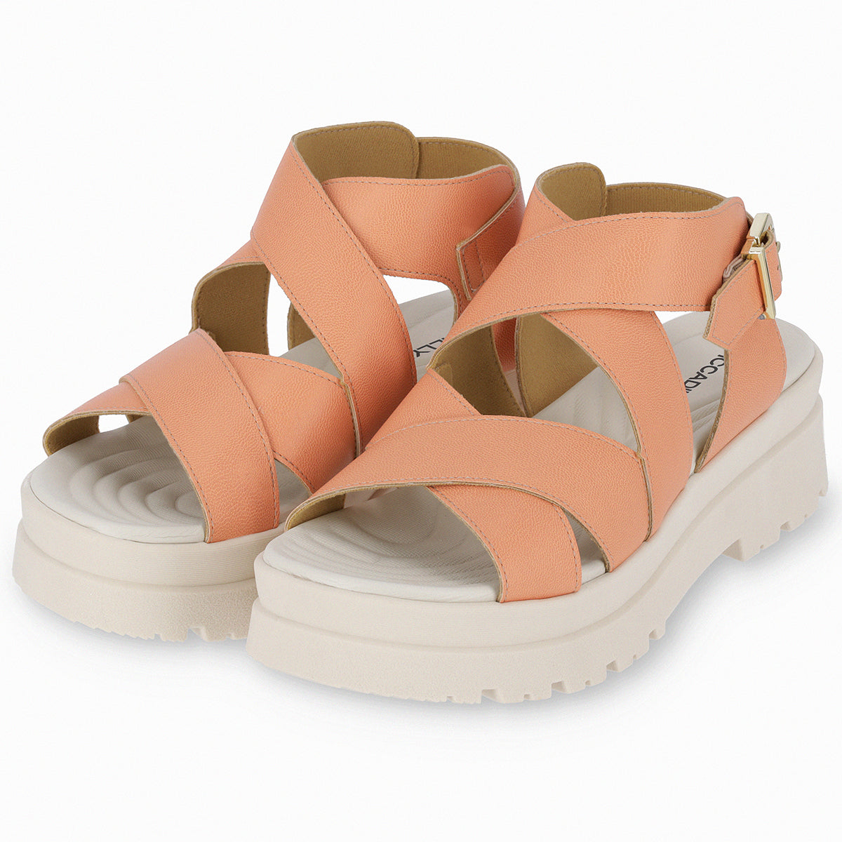 - La Sandalia Salmón Mediana Claudia Salto Anabela es una opción ideal. La tendencia salmón se puede utilizar con tonos neutros, como el blanco y negro, tonos tierra e incluso crea un look muy a la moda con colores más vivos, como el rosa, el rojo y el naranja. Calce Fácil y libertad en el día a día, no necesitas usar las manos para ponértelo, así tendrás más seguridad al entrar y salir de casa. Con súper amortiguación y plantilla anatómica, proporciona una mayor absorción de impactos.
