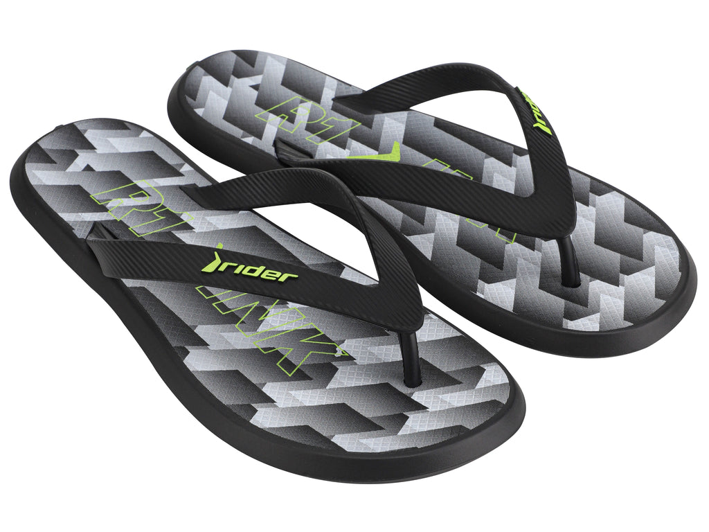 Las Rider R1 Sports Finger Ad son unas chanclas con una fina horquilla y serigrafía en la suela. La narrativa aborda el espíritu deportivo como inspirador, ilustrando algunas prácticas, maniobras y movimientos.