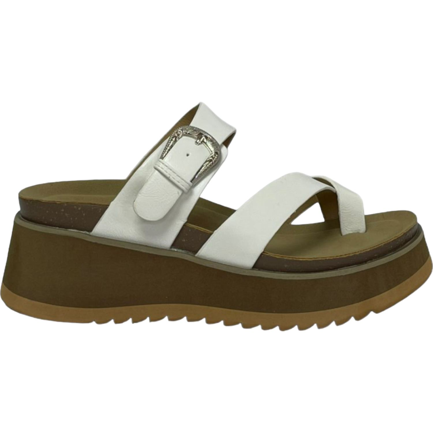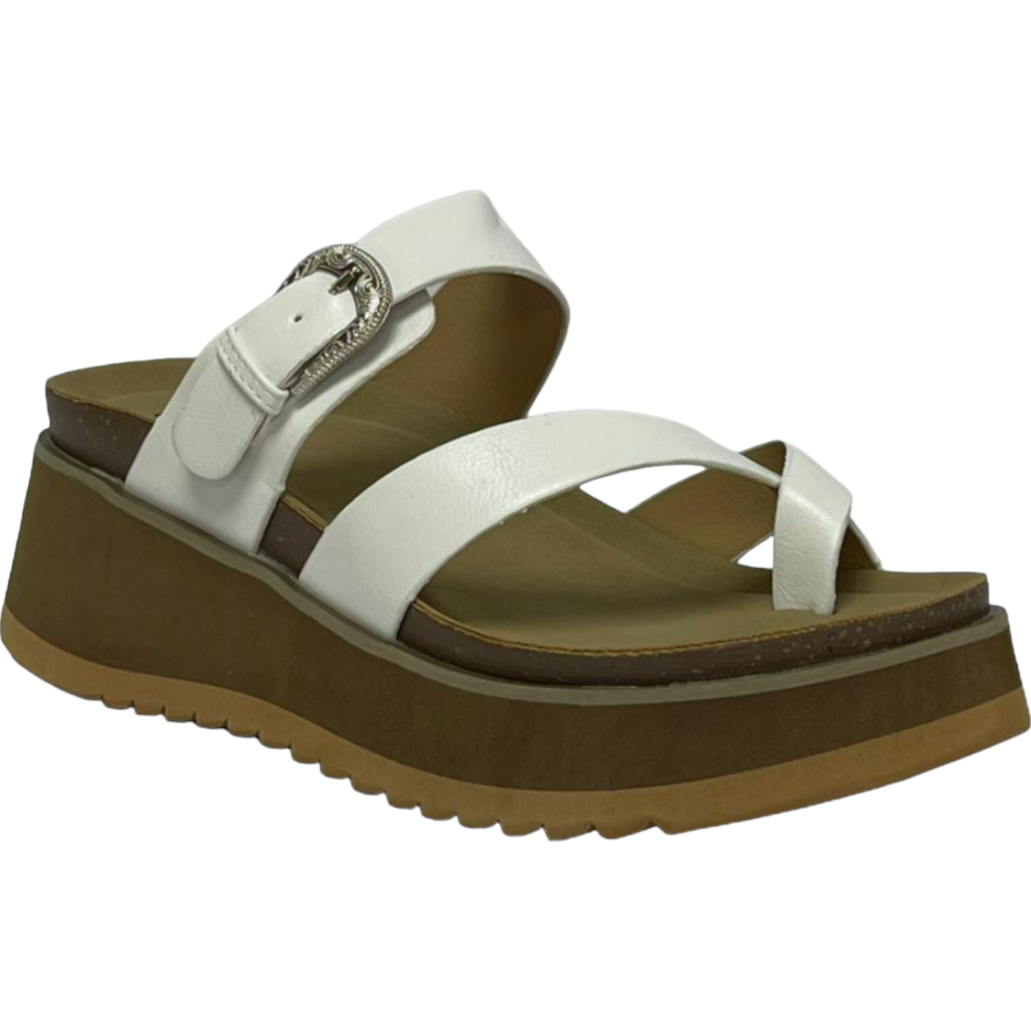 - La sandalia Rosario destaca por su estilo moderno y versátil. Con plataforma de 6 cm en EVA y plantilla textil, brinda suavidad y confort en cada paso. Su capellada sintética en color blanco con hebilla la convierte en la opción ideal para un look casual con un toque elegante.