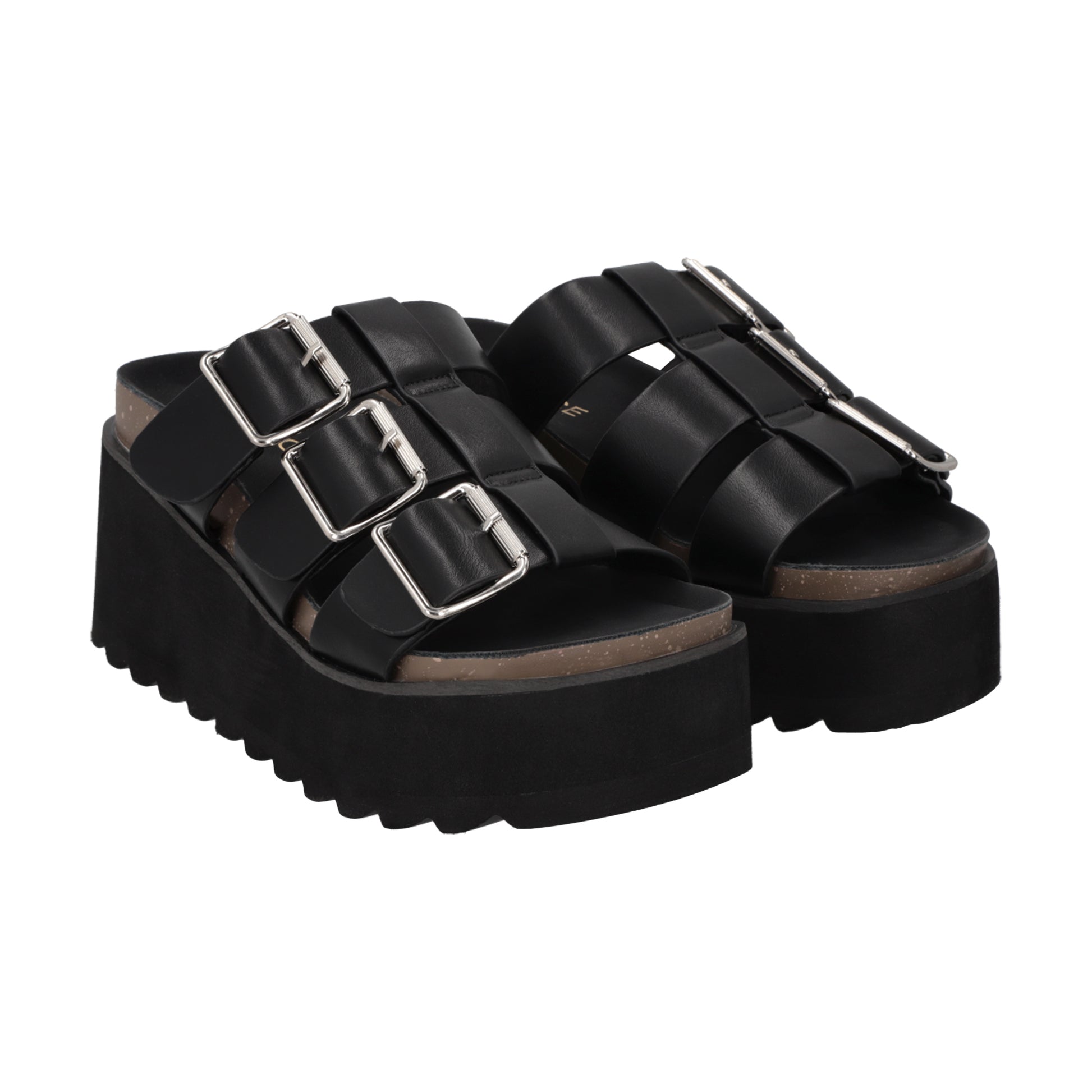 La Sandalia Novat es ideal para quienes buscan altura con estilo. Su diseño de múltiples tiras con hebillas metálicas le da un toque moderno y urbano, mientras su plataforma XL ofrece presencia y comodidad a la vez. Perfecta para looks más atrevidos y outfits de noche o fin de semana.