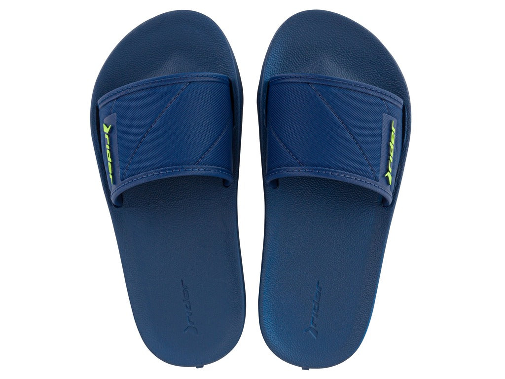 Nuestro Slide inspirado en el movimiento de las calles, no solo presenta una parte superior con una textura en alto relieve, sino también dos opciones de color que aseguran que el logo Rider se destaque en los pies de los niños.